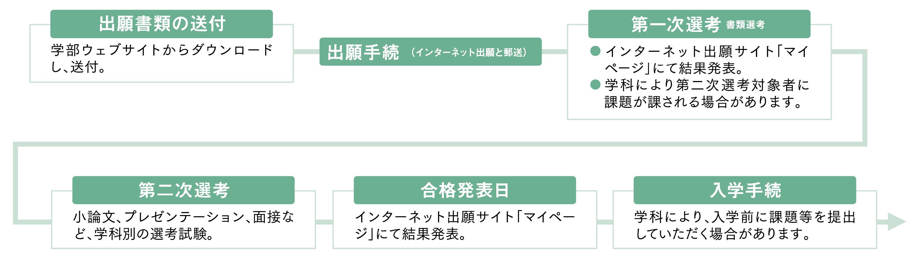 ※令和8年度(令和7年度試験実施)総合型選抜の出願期間です。令和9年度(令和8年度試験実施)の出願期間は令和8年7月頃公開予定です。