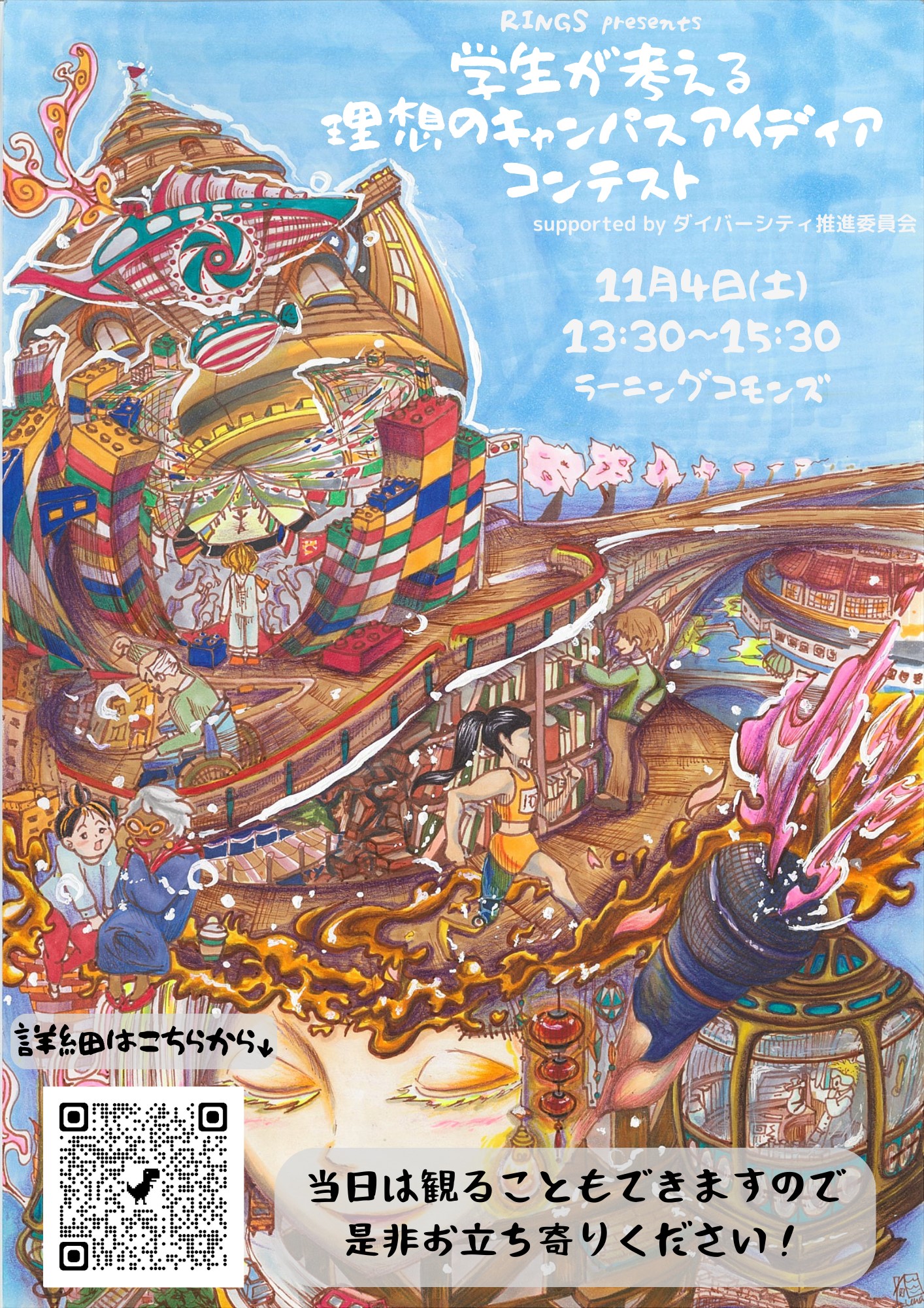 このたび「学生が考える理想のキャンパスアイディアコンテスト」をRINGSに所属する学生が主催し、11月4日(土)の桜麗祭にて各賞が決定しましたので報告いたします。