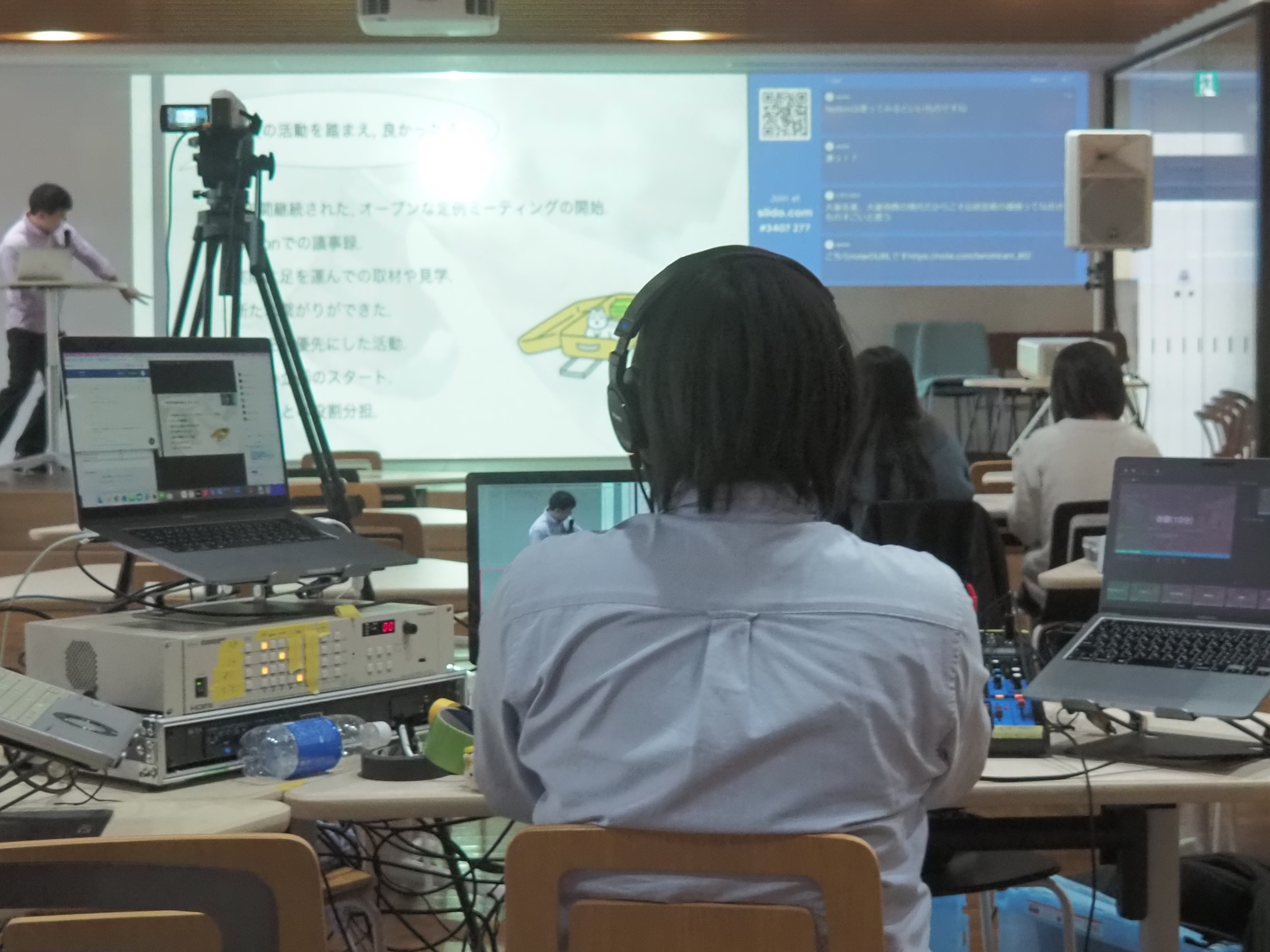 ラーニングコモンズ(本館1階)にて各団体の代表者がスライドを用いて発表を行い、その様子はZOOMでも配信されました。また、Slidoを導入し、リアルタイムでのコメントも可能としました。