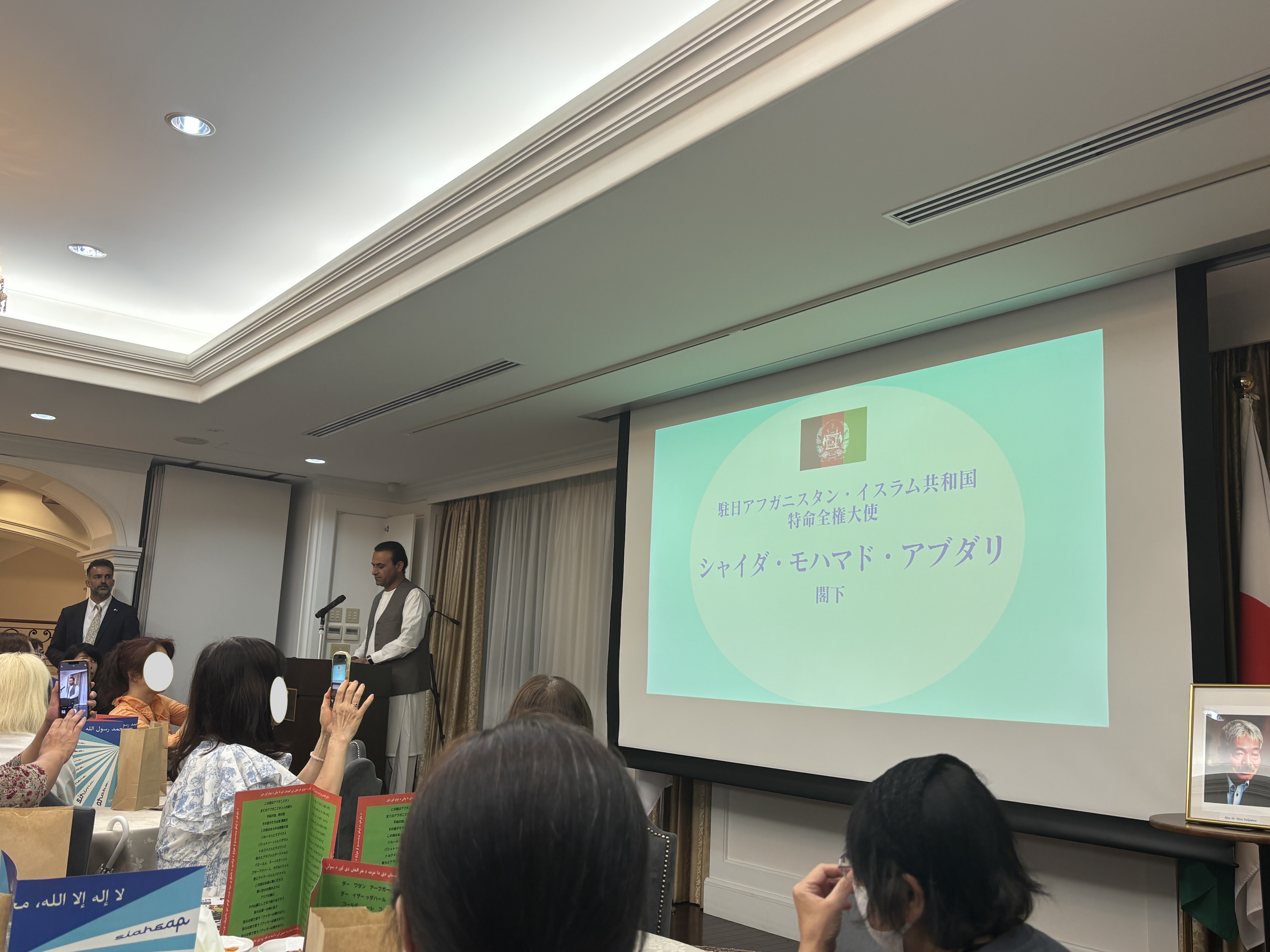 初めて大使館を訪れた学生の中には緊張を覚えた者もいましたが、大使や公使の方々の温かいおもてなしと、参加者全体の和やかな雰囲気に触れ、安心して交流を楽しむことができました。会場には中村哲先生の写真も飾られており、その活動の大きさに胸を打たれた学生も多くいました。また、大使が語られた「教育の権利を奪われた女性たち」の現状についての話は強く心に残り、教育の持つ力とその重要性を改めて考えるきっかけともなりました。